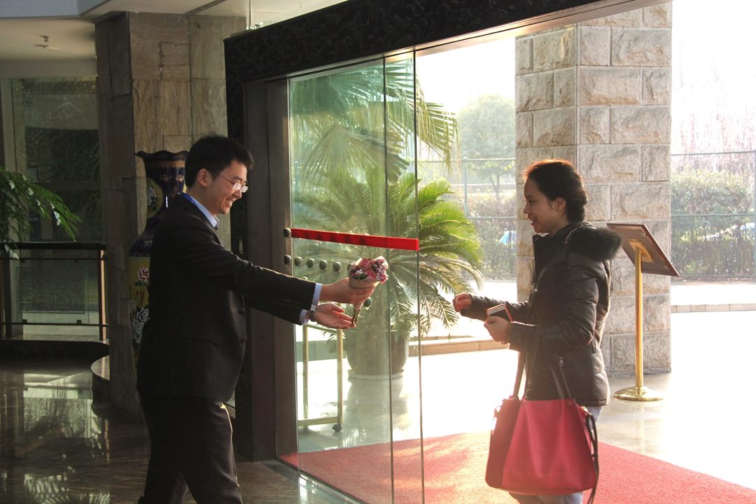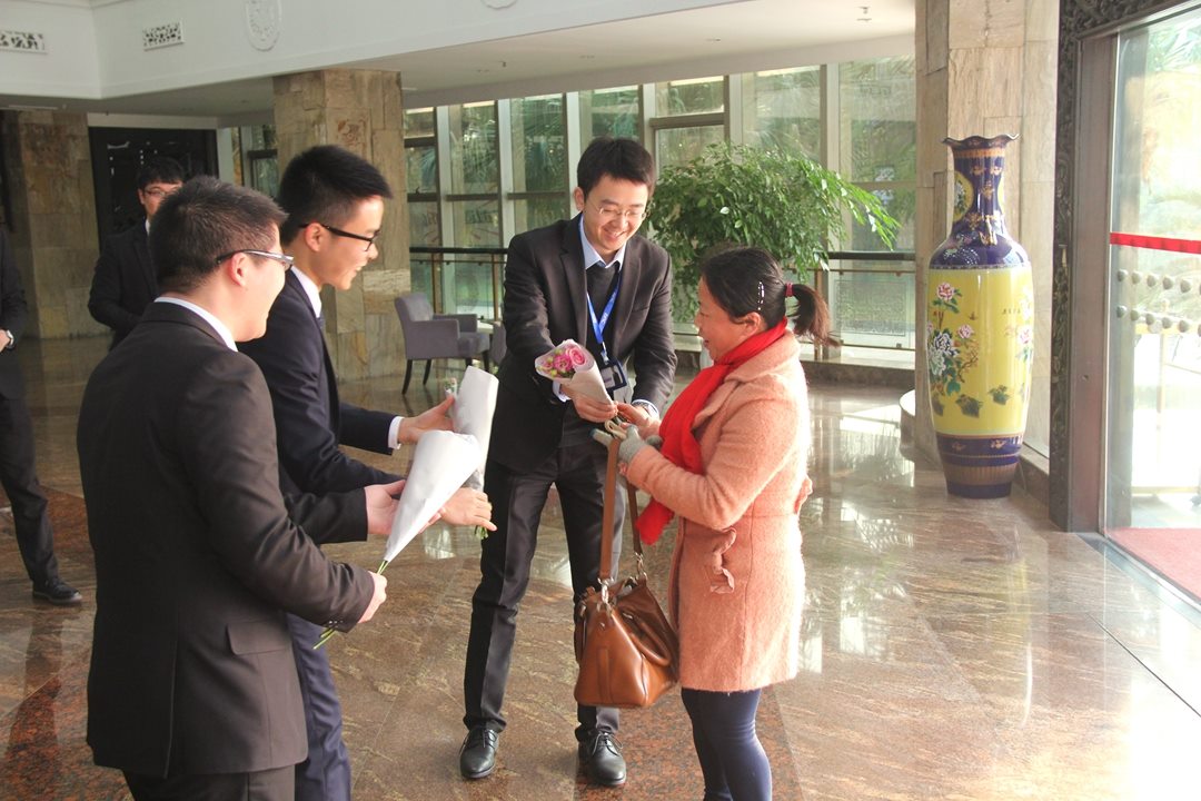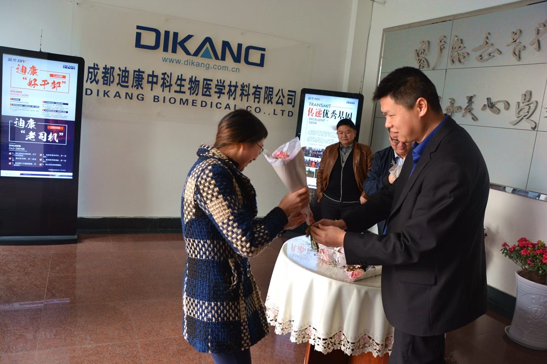 为突出节日惊喜,让女性员工感受到浓浓关爱,一大早,生命科技集团各办公大楼门前,由清一色男性员工组成的赠花小组已准备就绪,将为每一位女神送上节日的祝福。当女性员工陆续抵达公司后,赠花小组便迎上前去,将事先准备好的鲜花送到每一位女神手中。从看到鲜花时的惊喜到接过鲜花祝福后的灿烂笑容,欢笑声、感谢声不绝于耳。